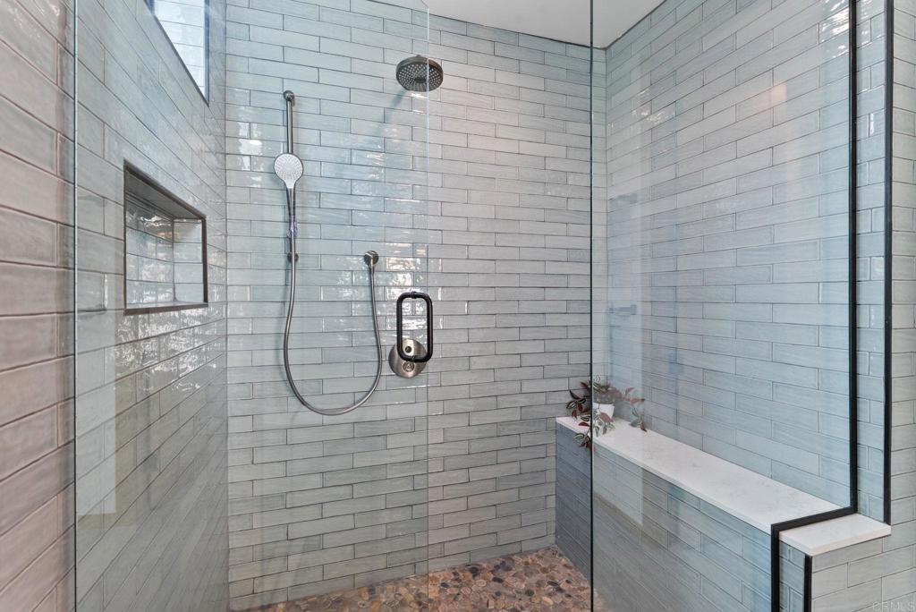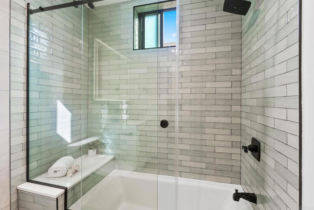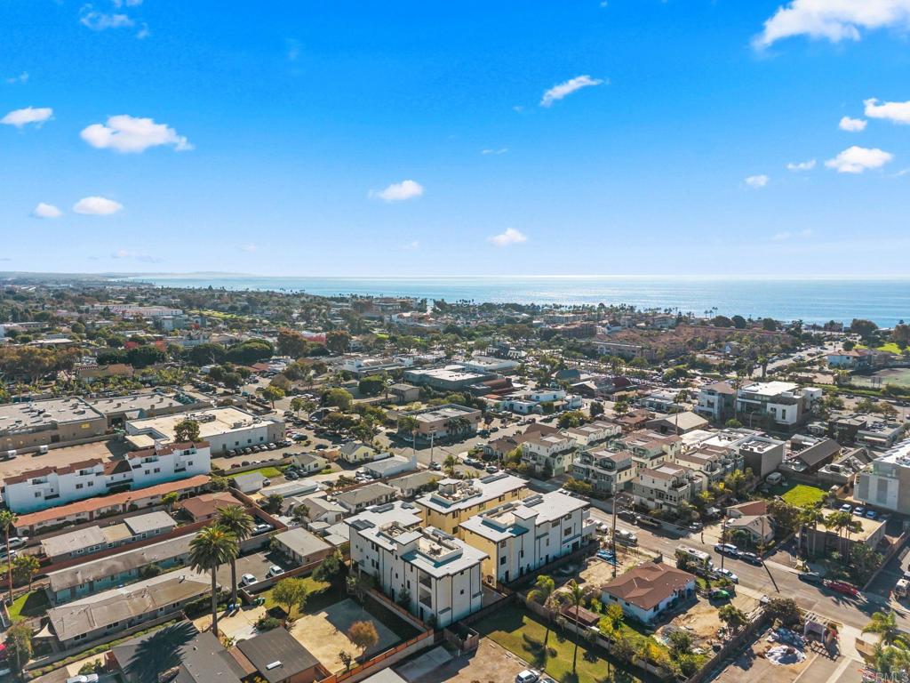 NEW CONSTRUCTION - DEVELOPER MOTIVATED TO SELL FINAL UNIT -Beautiful single-level (no stairs), first-floor unit at Roosevelt Nine Condos. Home features an open-concept true chef's kitchen showcasing an oversized island, white custom European slab-style cabinets, Thermador appliances (fridge and dishwasher paneled to match), gold hardware, a Kohler touchless faucet, and a professional-grade Thermador hood vent. Corian Quartz counters, matching backsplash, and a dramatic waterfall island create a modern, high-end look. Dining area includes a large custom built-in seating bench with extra storage. Solid core doors from Urban Doors and matching wood baseboards run throughout, complemented by luxury motorized window treatments in bedrooms. Spacious primary suite offers a large sliding glass door opening to the private backyard and filling the room with natural light. Attached primary bathroom features designer tile, a custom glass shower enclosure, and a fully built-out walk-in closet. Located in the heart of Carlsbad Village, this home is a short stroll to countless dining options ranging from Michelin-rated restaurants like Jeune et Jolie and Lilo to casual favorites like Pure Taco and everything in between. The large, side-by-side attached garage (424 sf) will include epoxy flooring and custom storage cabinets, along with an EV outlet for car charging. Comes with owned solar. This an incredible opportunity to move into a highly upgraded brand-new home in one of Carlsbad's most vibrant neighborhoods.