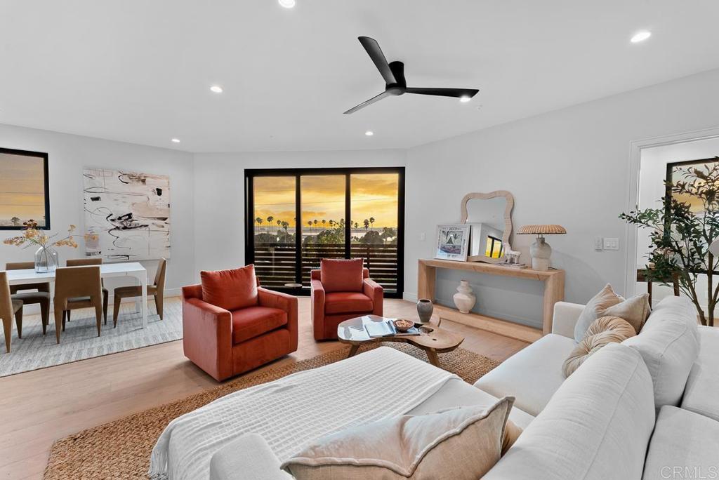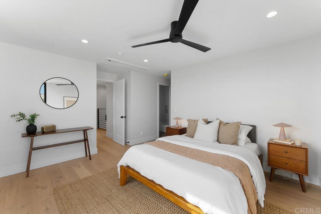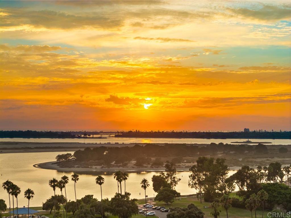 4224 is a premium corner unit with arguably the best views in the project! Enjoy dramatic sunsets over Mission Bay and fireworks in the summertime. 4224 features a spacious open concept layout with designer touches, including a large kitchen island, solid surface quartz countertops with matching backsplash, and custom inset European slab cabinets. Brushed gold kitchen hardware, Thermador appliances, floating iron staircases with custom glass work, engineered hardwood floors, and stylish lighting fixtures. Tons of natural light from oversized windows and floor to ceiling balcony slider doors. Spacious bedrooms all with on-suite bathrooms and three private decks totaling 154 sf. The 401 sf private garage (2 side by side parking spots) is set up for EV charging and home comes with owned solar. Comes with an upgraded home warranty (2-10 Home Warranty). Great central location provides easy access to transit, local dining, coffee shops, and the expansive Mission Bay Park, a 4,600-acre oasis perfect for biking, jogging, picnicking, and water sports. The expanded Blue Line (light rail), short walk away, connects to Downtown, UCSD, SDSU, UTC, Sorrento Mesa and beyond. Less than a 10 minute bike ride to USD. Project is VA approved.