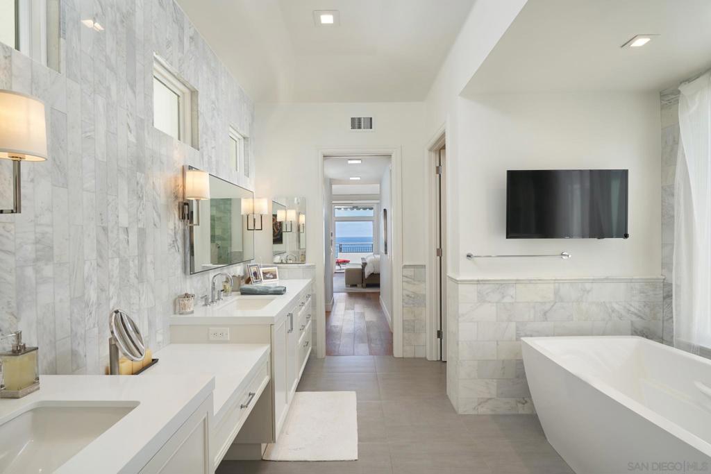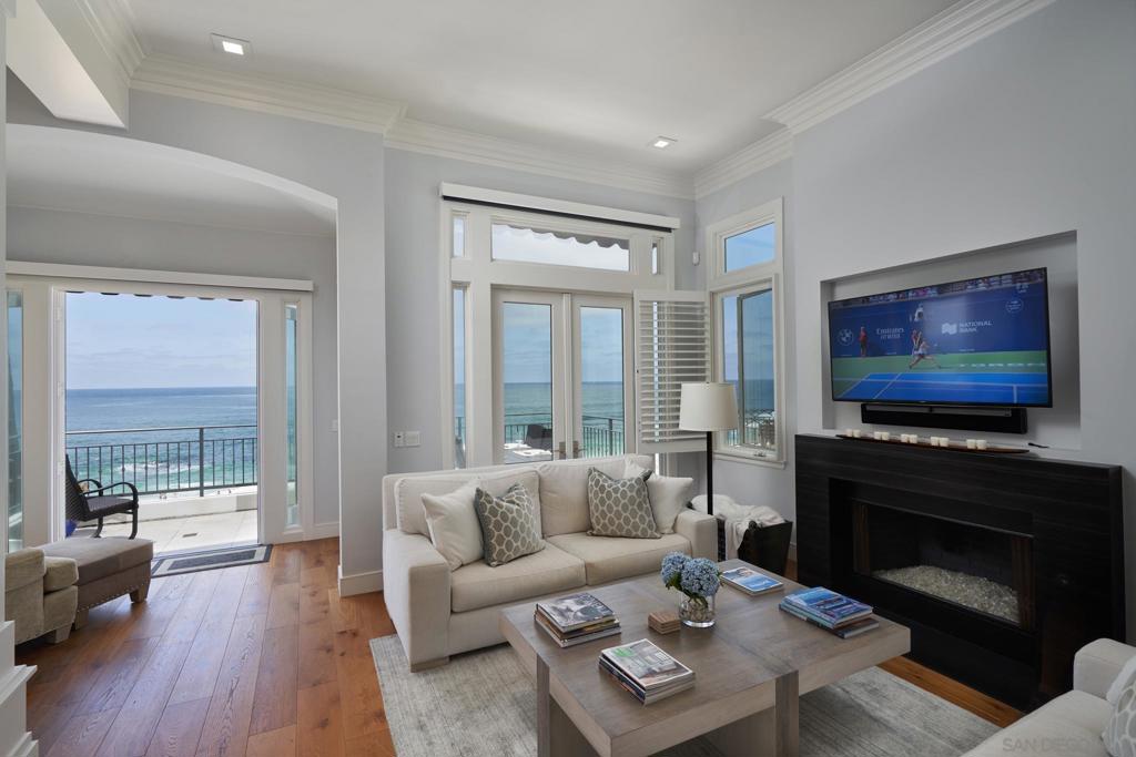 Impeccably maintained and thoughtfully updated, this well appointed coastal residence is located directly across from the sand at iconic Wind'N Sea Beach, one of La Jolla's most sought after stretches of coastline. The home features soaring high ceilings on both the main living level and the upper level, creating a light filled and open atmosphere throughout. Recent improvements include newly installed exterior doors, new balconies, and beautifully updated interior courtyard tile The floor plan offers seamless indoor outdoor flow with multiple outdoor spaces, ideal for both everyday living and entertaining just steps from the beach. Situated in one of the most sought after neighborhoods, this property presents a rare opportunity to own a turnkey home in a premier beachfront setting.