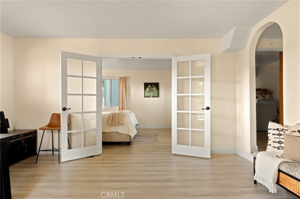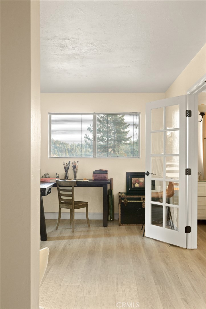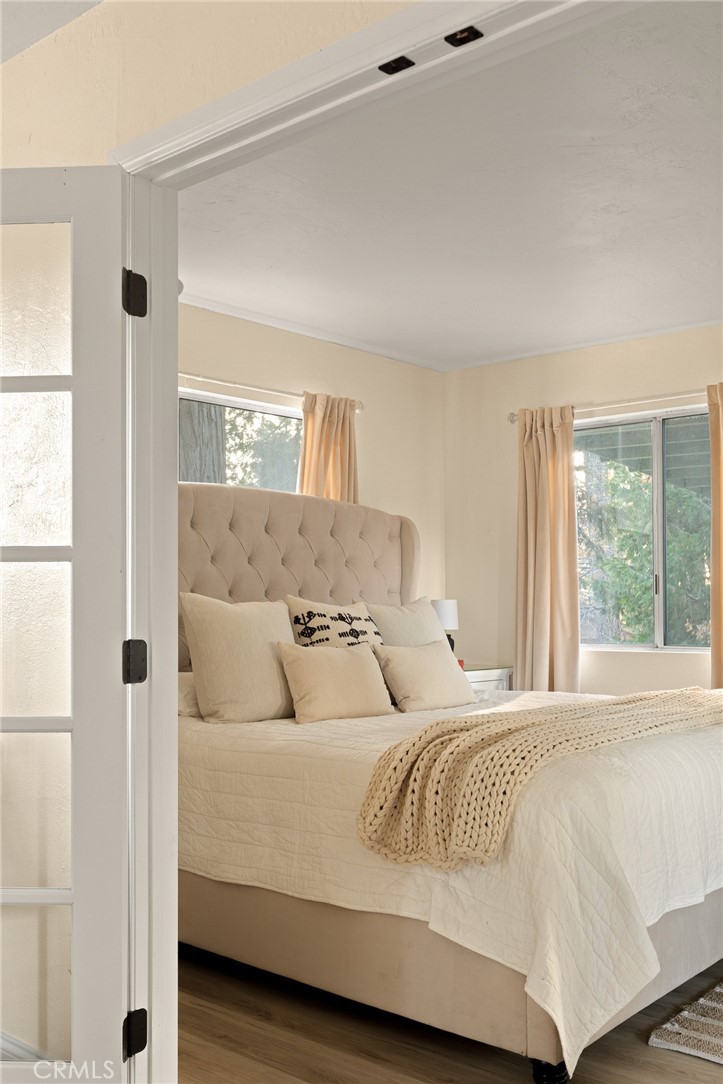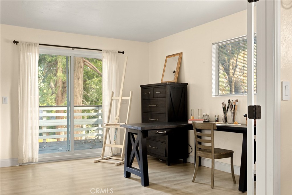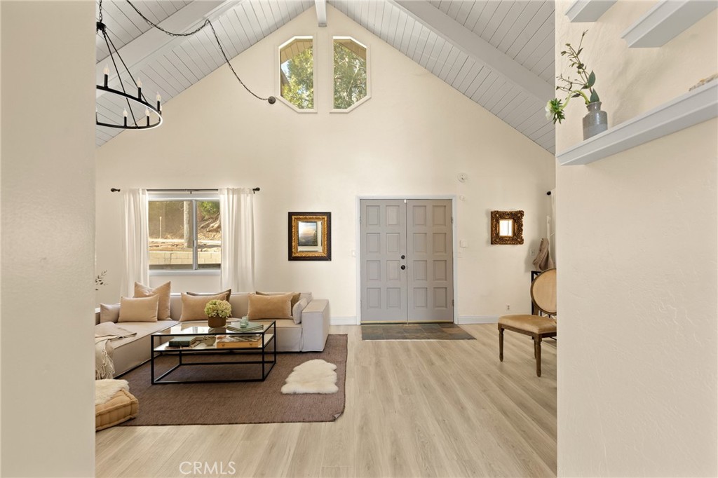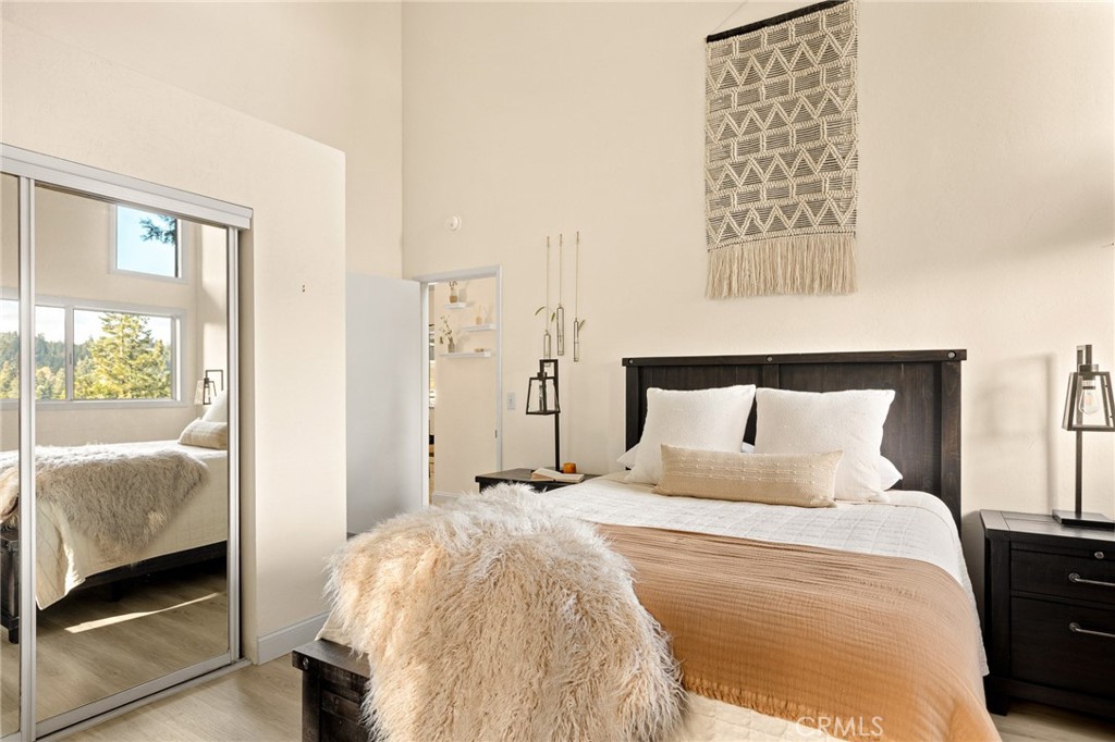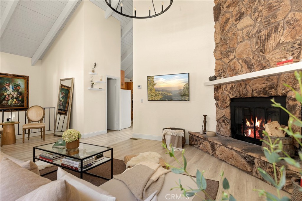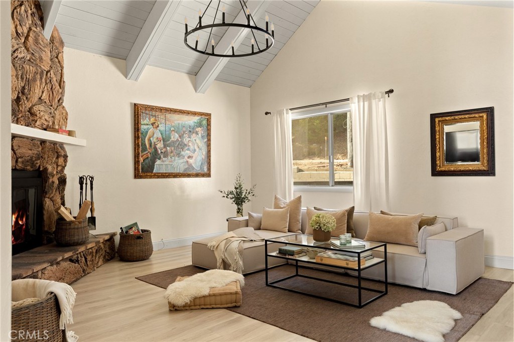 A mid-century chalet with soaring ceilings and a perfectly framed view of never ending tree tops. Spend your time in the mountains at this light-filled and serene cabin. A main floor living space with sky high ceilings and centerpiece stone fireplace is the heart of the home. Adjacent you will find a bright bedroom and kitchen with private deck. The downstairs bonus room is a perfect retreat with charming accents and french doors leading to a 2nd cozy bedroom and bath. The most unique aspect of the property is the fully fenced and usable large yard with access from the downstairs bonus room! Located central to Sky Park at Santa's Village, the shops and restaurants at Sky Forest and The Village at Lake Arrowhead. This is a walk in a drop your bags type of home!